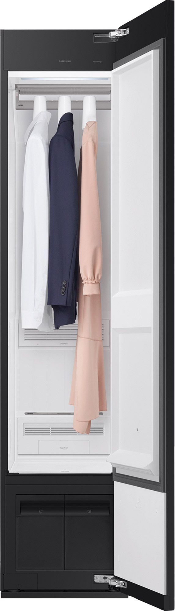 Besonders für empfindliche Materialien wie Strickwaren oder Jacken bietet er eine schonende Alternative zur Reinigung. Auch die Hygiene kommt nicht zu kurz: Im Desinfektionsprogramm werden Bakterien und Hausstaubmilben wirksam reduziert. Über smarte Funktionen wie die SmartThings-App oder die Kopplung mit Samsung Waschmaschinen wird die Bedienung zudem nahtlos in den Alltag integriert.